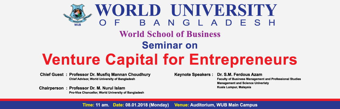 World School of Business, WUB is going to arrange a Seminar on "Venture Capital for Entrepreneurs".